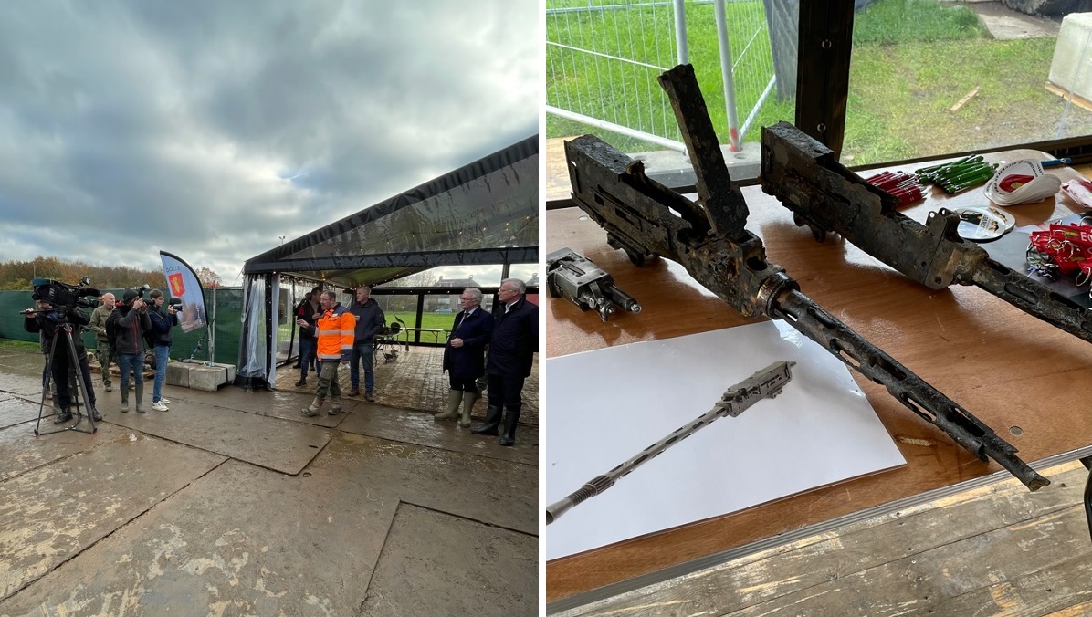Staff-Officer Coen Cornelissen of the RNLAF before the press. Two Colt Browning .303 were found just 20cm under the surface.