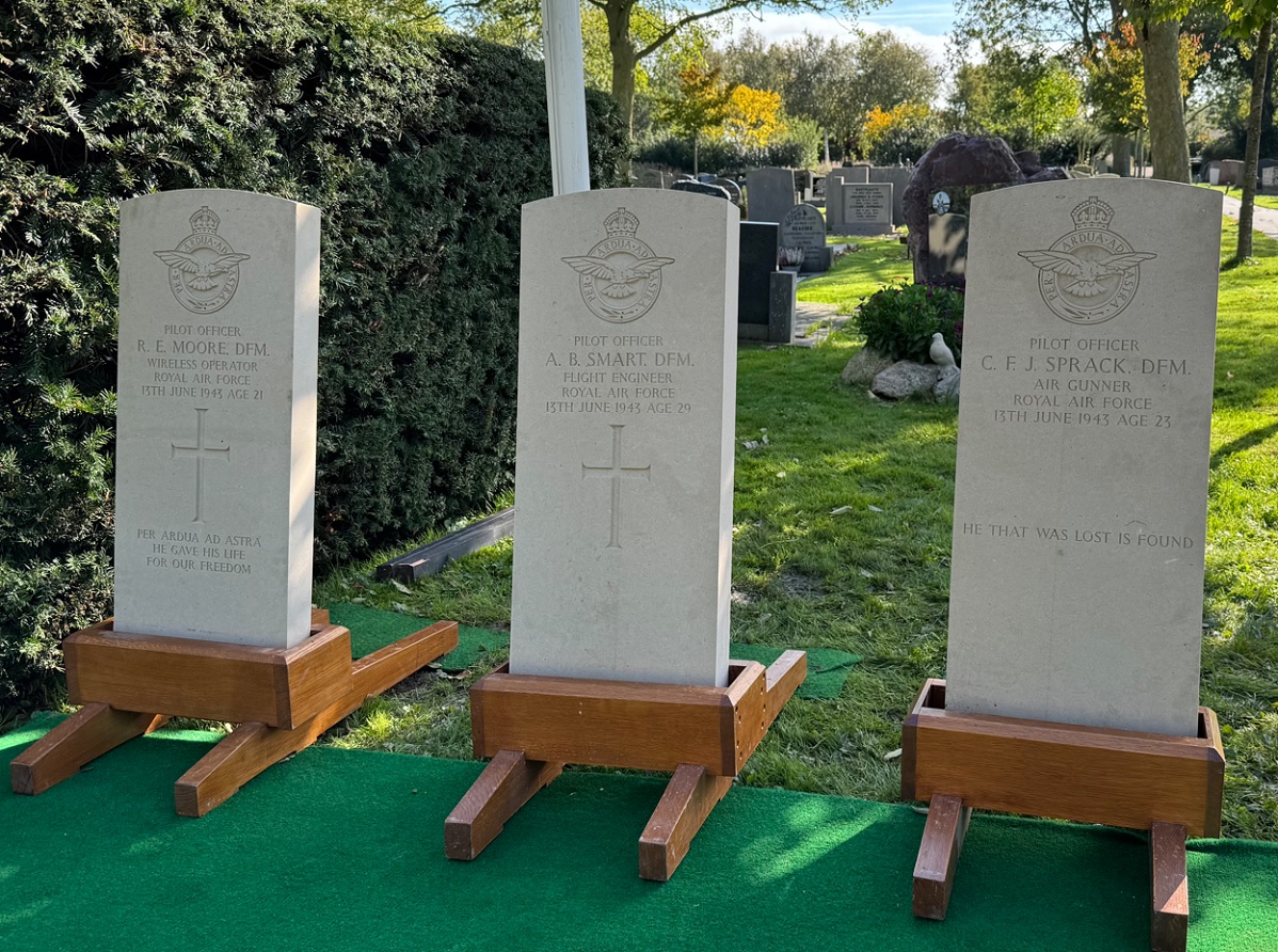 The missing crew of the ED603 are: Pilot Officer Arthur Smart, Pilot Officer Raymond Moore and Pilot Officer Charles F. Sprack. All three were already decorated with the DFM before they were asked to join the new elite RAF 83 pathfinder squadron begin 1943.